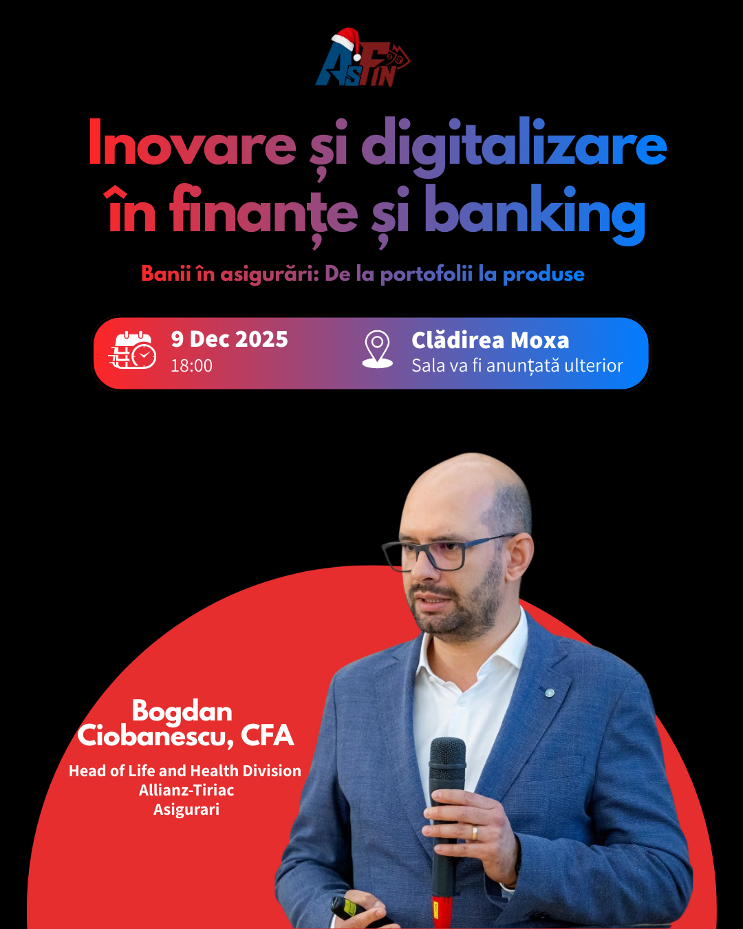 Invitatul întâlnirii va fi Bogdan Ciobănescu, Head of Life and Health Division la Allianz-Țiriac Asigurări, care va oferi perspective actuale despre investiții și inovație din domeniul asigurărilor.