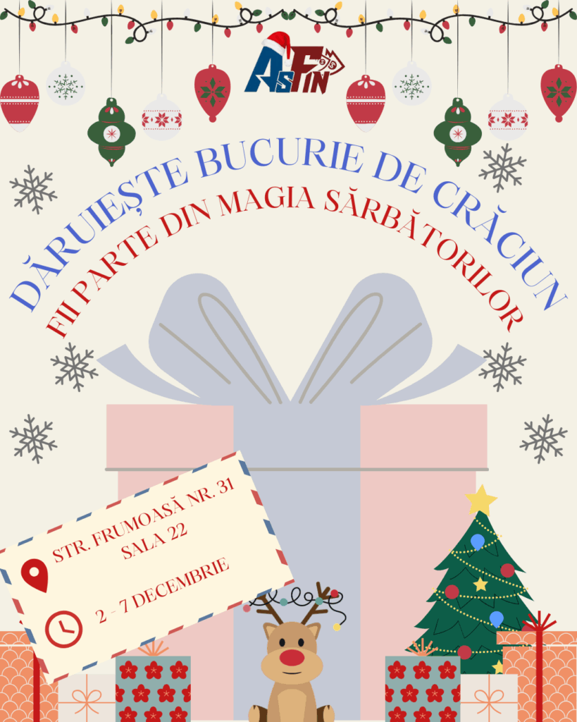 Asociația Studenților Finanțiști desfășoară o campanie de donații pentru cei mici, iar tu poți sprijini inițiativa oferind dulciuri, hăinuțe sau jucării noi, achiziționate special pentru ei.